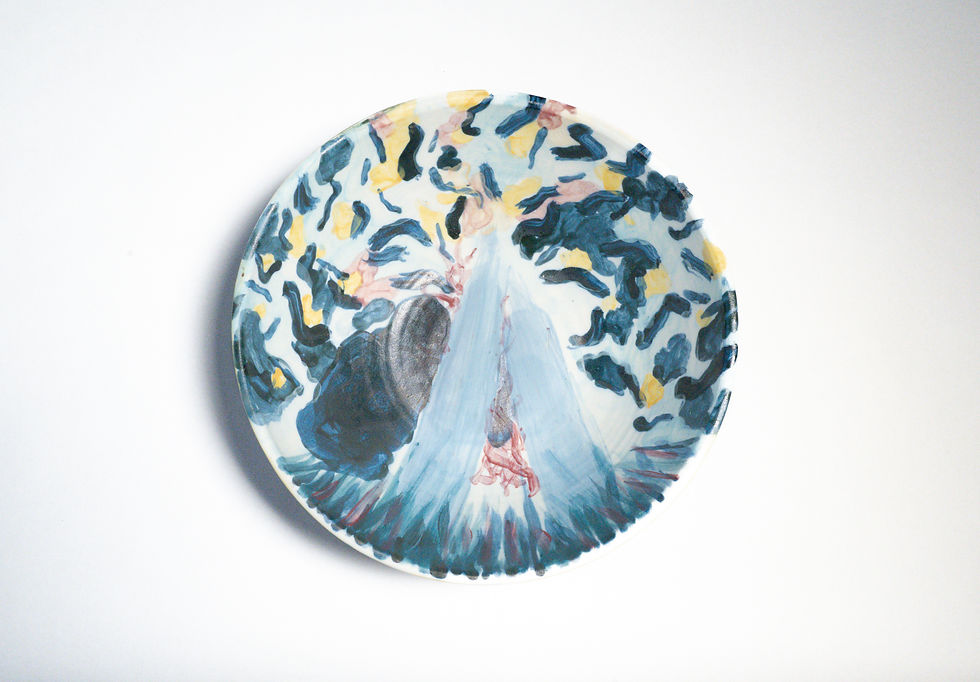 Wheel thrown porcelain vase by Kate Wheaton with underglazes by Michelle
